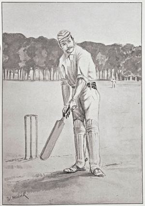 Een tekening van een cricketspeler door W.J.H. (‘Pim’) Mulier voor zijn boek Cricket uit 1897.