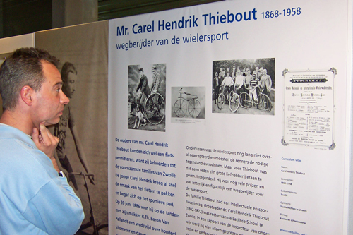 Meester Thiebout en Kea Bouman zijn twee andere helden uit de oude doos. Ook dit duo zal veel gefronste wenkbrauwen oproepen bij de meeste sportliefhebbbers, verwacht Wim Coster. Maar vanaf 21 april zullen zij geen onbekende iconen uit de Overijsselse sportgeschiedenis meer zijn. ‘Dan weet iedereen dat meester Thiebout uit Zwolle in 1886 de grondlegger is geweest van de moderne wielersport en dat tennisster Kea Bouman in 1927 het tennistoernooi van Roland Garros op haar naam heeft geschreven. Zij kwam oorspronkelijk uit Delden en heeft later in Almelo gewoond. Haar historische prestatie in Parijs is bij niet veel mensen bekend. We hebben mooie oude beelden van Bouman.’