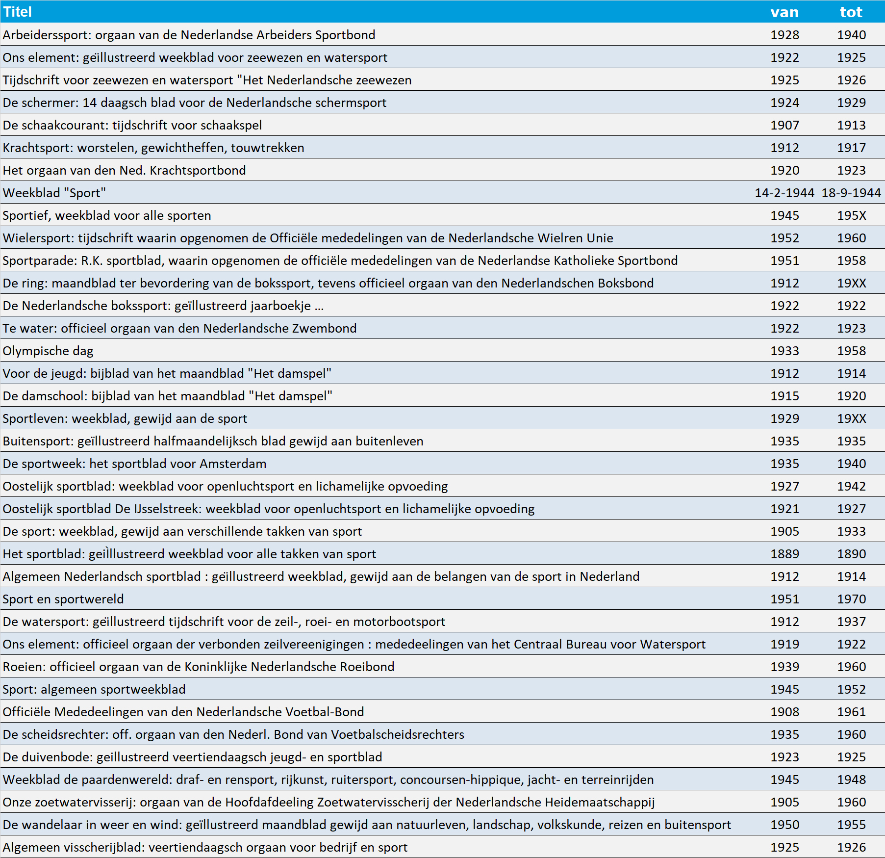 Mede op basis van informatie die Stichting de SPORTWERELD heeft aangeleverd zijn interessante periodieken gehonoreerd zoals: