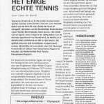 • De geschiedenis van tennis, Etymologie van tennis, Historisch besef van tennis, Sportverleden op het Binnenhof, Joop de Mos, Notre Dame des Cylcistes, Henk Faanhof ...