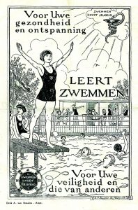 …’De aanleiding tot de oprichting van onze club was een tocht naar Hoorn in Augustus 1918, waar de vereeniging “Het Hoornsche Hop” zwemwedstrijden organiseerde in de Zuiderzee, waar we graag voor het eerst onze krachten eens met anderen wilden meten. Met een clubje van 6 begaven we ons op de fiets naar Hoorn, waar alle deelnemers samenkwamen in een café, vanwaar we ons in optocht met muziek voorop naar de zweminrichting begaven.